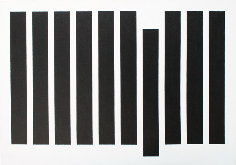 Statični jednostavni monokromatski motiv koji sam izabrao za oslikavanje zidne fasade na kućnoj terasi. Nakon što se s tim moja žena nije složila, odvažio sam se monokromatski apstraktni motiv napraviti akrilnim bojama na platnu. Ohrabren rezultatom počeo sam slikati i redati platno za platnom.