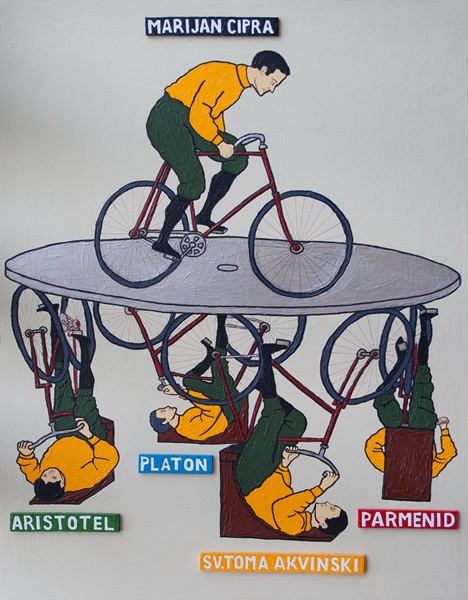 Posveta po meni našem najvećem misliocu i mudracu – Marijanu Cipri, autoru „Metamorfoza metafizike“ (nažalost, opet po meni) najboljeg teksta izvorno napisanog na hrvatskom jeziku. No svakako da je Cipri lako upravljati biciklom kada mu vjetar u leđa dolazi odozdo, od utjecjanih članova njegovog suvozačkog tima: Parmenid, Aristotel, Platon, sv. Toma Akvinski.